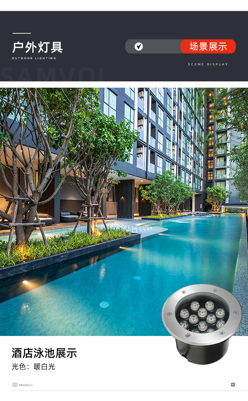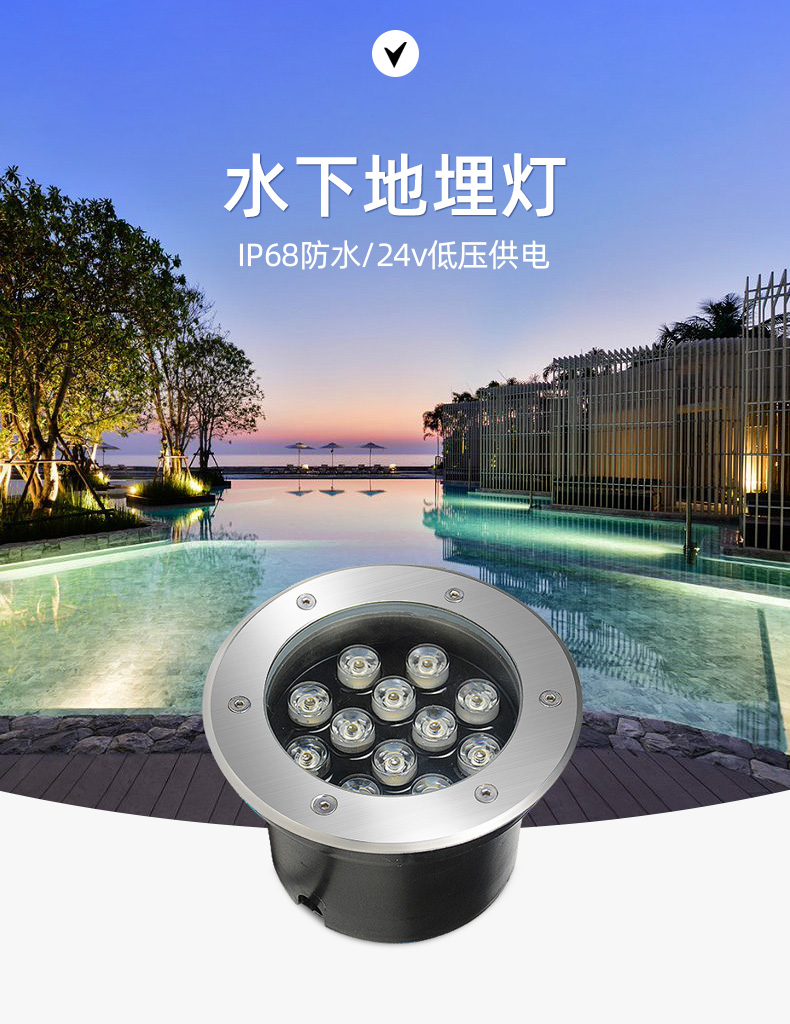LED水底水下地埋灯根据安装方式一般分为明装地埋灯和暗装地埋灯。明装是指灯具暴露与外面; 暗装指灯体部分嵌入式隐藏,一般只看到发光点看不到灯体。水底水下地埋灯通常采用暗装的安装方式。