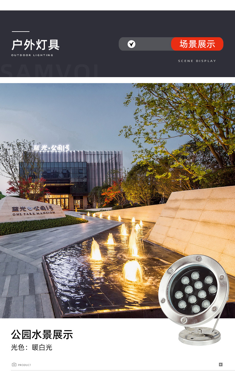 LED水下灯是一种用于水下环境照明的灯具。这些灯具通常被安装在水池、水下景观、喷泉、湖泊、池塘、水族馆等地方,以提供夜间或暗处的照明,同样也可以为水景创造出独特的视觉效果。