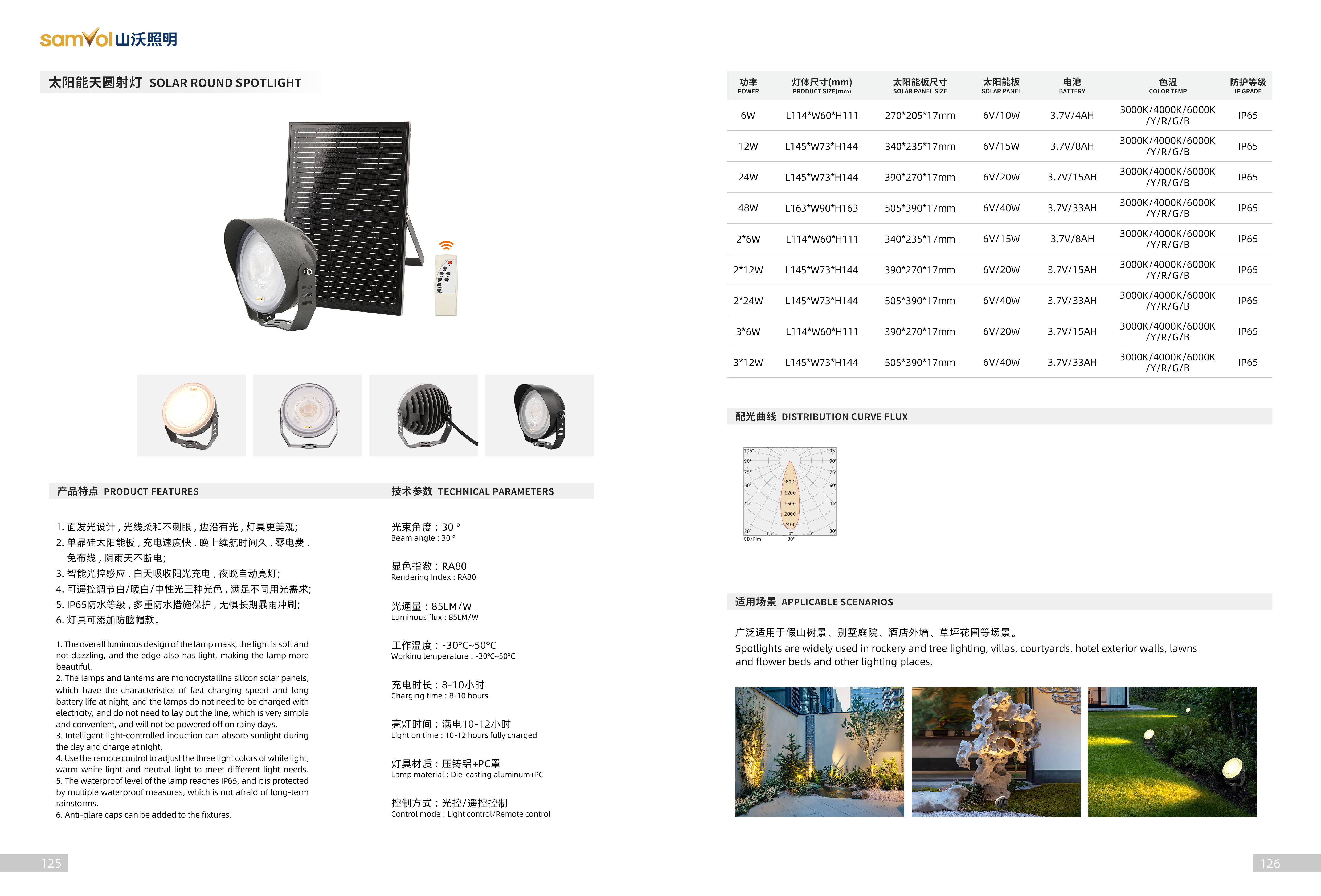 2. 智能光控感应,白天吸收阳光充电,夜晚自动亮灯。可遥控调节白/暖白/中性光三种光色,满足不同用光需求。